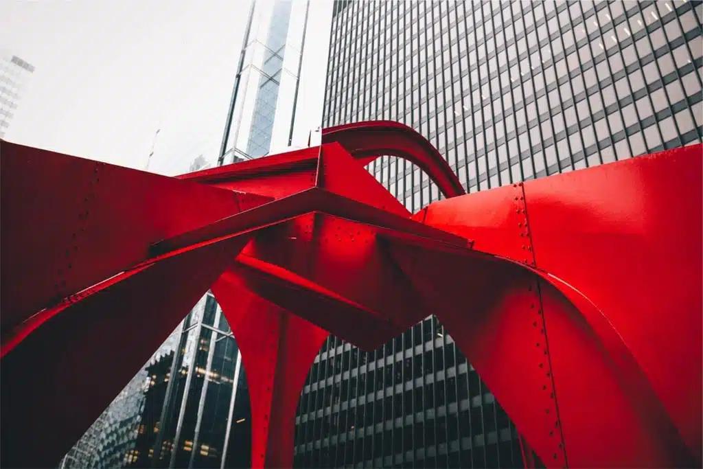 Where screening might be unsightly and natural landscaping impossible due to other restraints, it might be worth considering a piece of artwork or sculpture. By picking something that has a porosity appropriate for wind mitigation, you could have a beautiful addition to your space that is functional too! This might be used to reduce wind funnelling between buildings.