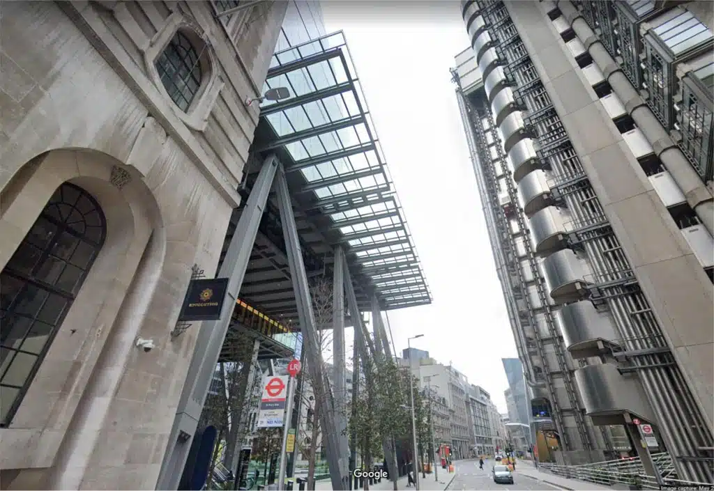 Perhaps the most famous canopy in London is The Leadenhall Building. Canopies such as this may be required when flat facades create downdraughts that impact at ground level.