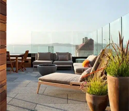 Commonly found on balconies, but also outdoor terraces, balustrades are most effective for direct exposure to winds. For larger outdoor terraces such as this one, a combination of a balustrade and natural landscaping can be effective as balustrades are not suitable for reducing downwash.