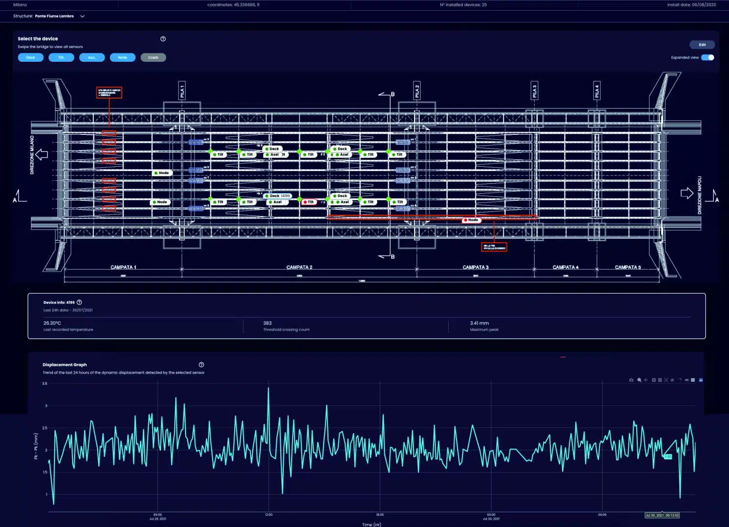 Figure 2b. Cloud Platform Showing Real-time Displacement Data