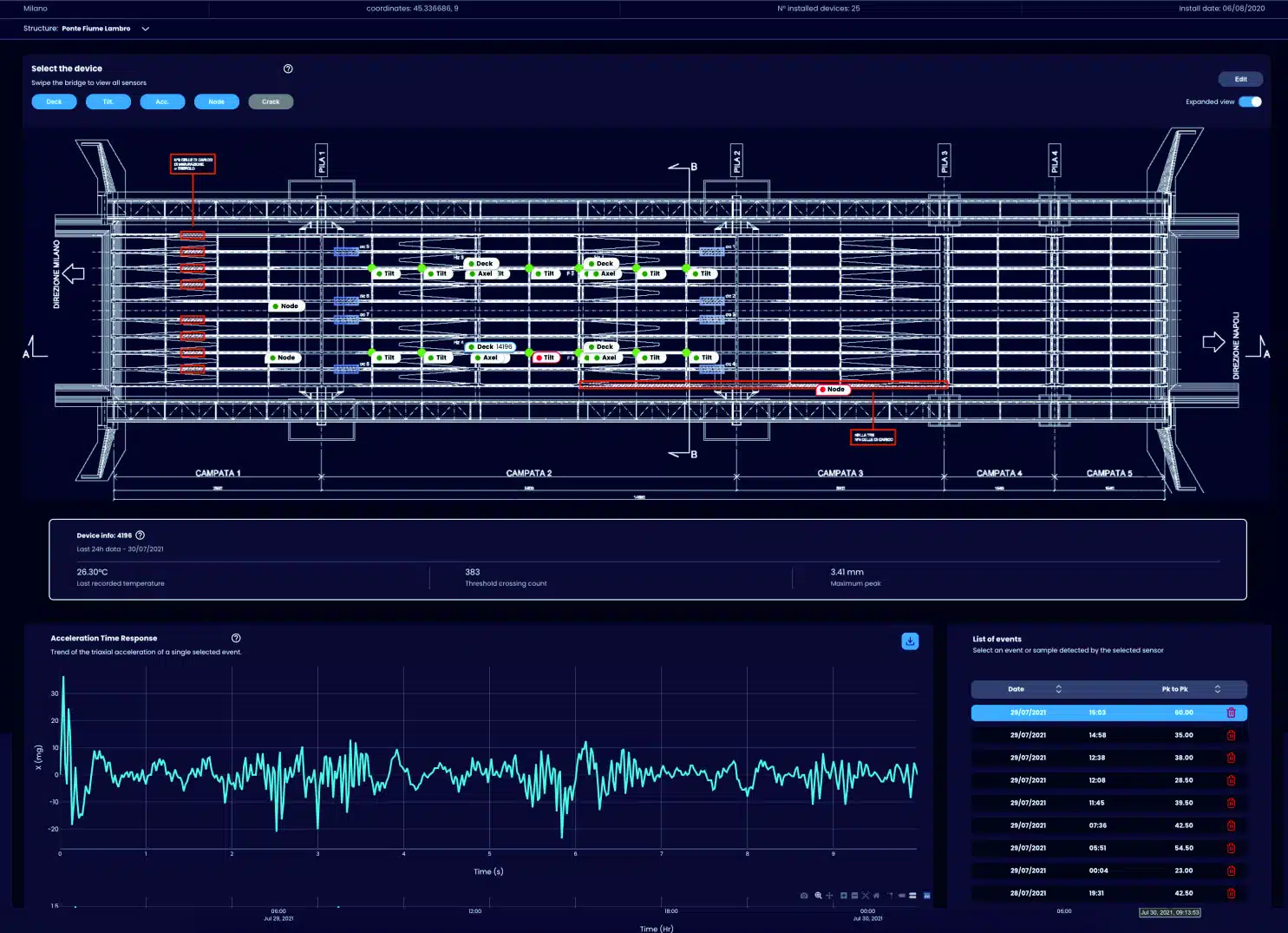 Figure 2a. Cloud Platform Showing Real-time Acceleration Time Response Data