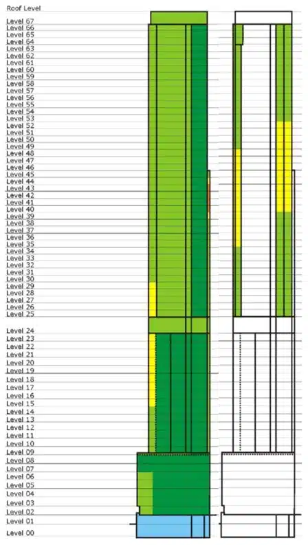 The building faced some unique challenges at the outset as pointed out by Andrew Johnson, the lead structural engineer from Arup Sydney, “It is the first building in the world that we are aware of where 45 stories have been grafted onto the top of an existing 25-story building, resulting in a slender tower of 10:1 aspect ratio integrating the existing structural frame and foundations into the redeveloped building.”