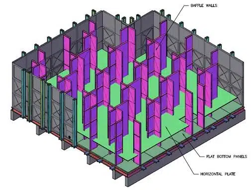 A unique feature of this damper design is that it can work with the basic overall dimensions of a fire hydrant tank located at the top of the building. This innovative design enables the liquid damper to work in a similar way to a dashpot, using an intermediate platform that engages the lower compartment. The damper performance can be optimised by adjusting the height of the platform within the tank.