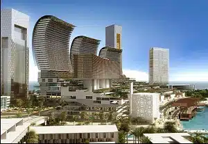 A wind tunnel study of the structural loads and building motion was undertaken for these three wave shaped tower structures up to 43-storey above ground. This structure is certainly not amenable to code-based predictions of the structural loads and occupant comfort under building motion due to the unusual wave shaped form of the three towers.