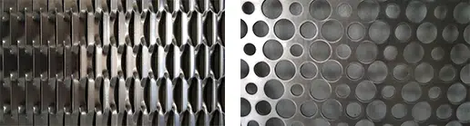 • The fixing of punched metal screens with a randomised pattern behind the existing punched metal screens with an offset (pictured bottom right)